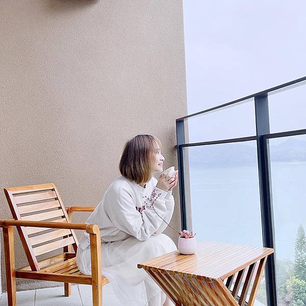 坐在陽台的椅子上,邊喝熱熱的茶~邊欣賞美麗的湖景,這感覺真得很幸福💗